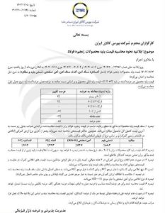 ابلاغیه جدید بورس کالا در خصوص ضرایب جدید قیمت پایه (مواد اولیه) زنجیره فولاد از روز یکشنبه (۱۳ مهرماه) اجرایی شد و این در حالی بود که در تاریخ هفتم مردادماه ۱۴۰۴، انجمن تولیدکنندگان فولاد ایران به اتفاق انجمن سنگ آهن و انجمن نوردکاران توافق نامهای را بر سر نسبتهای قیمتی در زنجیره فولاد کشور به عنوان حداکثر پایه قیمتی معاملاتی در بورس کالا اعلام کرده و آن را به وزارت صمت ارائه داده تا وزارت صمت آن را به بورس کالا پیشنهاد دهد.