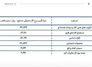 نرخ گاز شهریور ماه صنایع معدنی در شهریور ماه از ۷۲۰۰۰ ریال فراتر رفت که معادل ۱۰ سنت (مبادلهای) است.