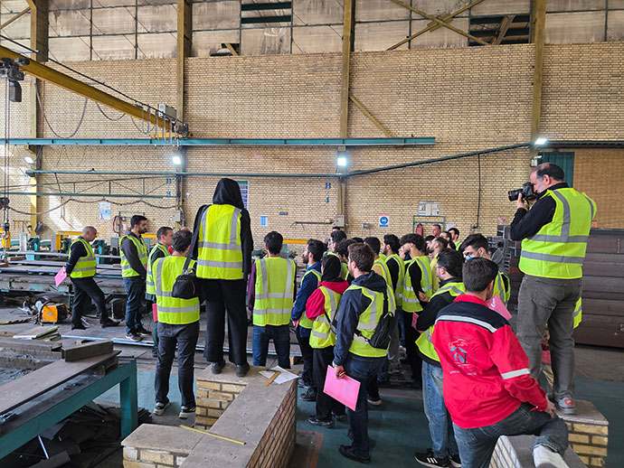 این بازدید که با حضور جمعی از دانشجویان رشته عمران برگزار شد، با هدف آشنایی با فرآیندهای تولید، ساخت و کاربرد سازههای فولادی در مقیاس صنعتی و ساختمانی انجام گرفت.