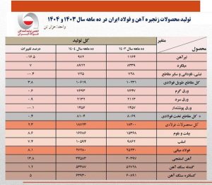 ارزش صادرات محصولات زنجیره آهن و فولاد کشور در ۱۰ ماهه سال جاری با رشد ۲۲ درصدی از ۶.۵ میلیارد دلار ( معادل کل سال ۱۴۰۳) فراتر رفت.